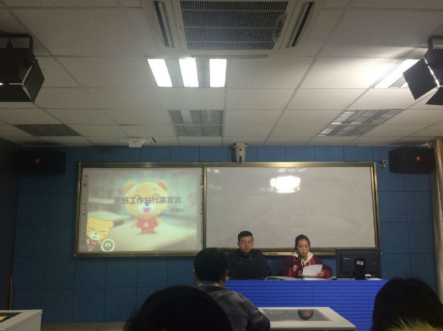 然后分别由易班工作站代表高嘉烨与马思雯发言