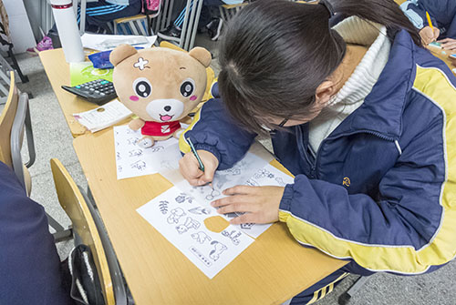 经过了一节课的奋战,杨冰莹同学完成了她人生中第一个橡皮章作品,社长很热心地用印台将它印了出来,并且把完成的作品送给了杨冰莹同学留作纪念。