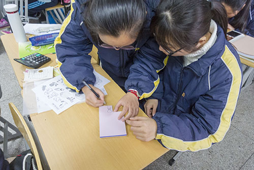 种子选手杨冰莹同学因为是第一次制作印章,所以她十分紧张,生怕有一点点小小的失误,会使得这一次的制章功亏一篑。而此时,在一旁的刻章社社长看到此情此景,立刻过来手把手教杨冰莹同学一些关于刻章的小技巧。