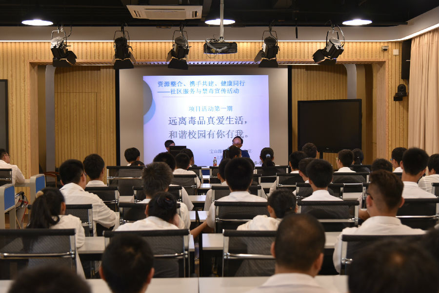 宝山路街道禁毒办带来预防毒品宣传版面20余块供学生参观,从宣传版面上,同学们对《上海市禁毒条例》、毒品的分类、毒品的危害及预防等知识有了初步的了解;参观后,学生们在学校报告厅,聆听了上海市中医医院朱医生关于如何开展毒品预防工作的报告,朱医生的报告列举了大量的事例和数据来说明毒品预防工作的重要性和形势的严峻性。另外,朱医生讲述了大量案例,告诫青少年要预防食物、药物中掺杂毒品。