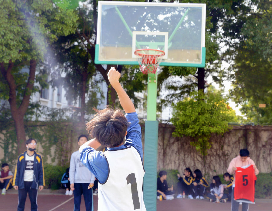 终于到了男子组决赛的时间。我们相继采访了冠军组1705班陆文昊同学,他认为在刚才的比赛中他们队在整场比赛的节奏上把控的很好,就是在投篮方面还有些小失误,但是并不影响他们的整体发挥。