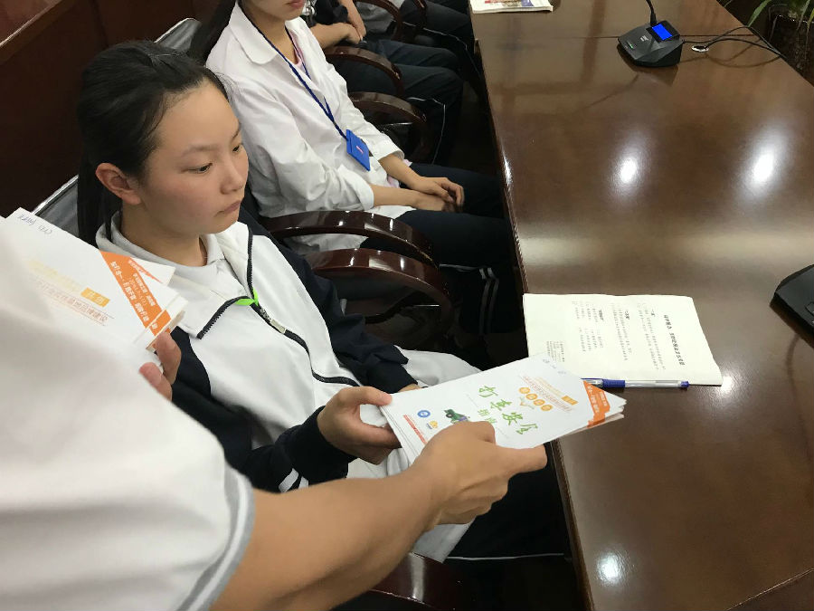 劳模班的同学们制作的安全手册很小,仿佛几秒就能看完,但如果做起来很难,册子的封面有四服务“服务同学,服务老师,服务校园,服务社会”打开册子第一面是劳模班的同学们写的暖心的话,特意用黑体字标出重点,还有《图解女子防身术》,第二页说因为打车事件,上海大众出租车在518日成立了首支女性乘客专享服务车队,不同于传统出租车的是,大众“玫瑰之盾”车队有显著的玫红色丝带标志,司机也有严格的要求,必须是以党员、班组长为主,每个人至少要有三年以上的安全服务为“零违纪”记录,而且这支车队优先女性乘客,册子反面的问题和回答也很温馨…