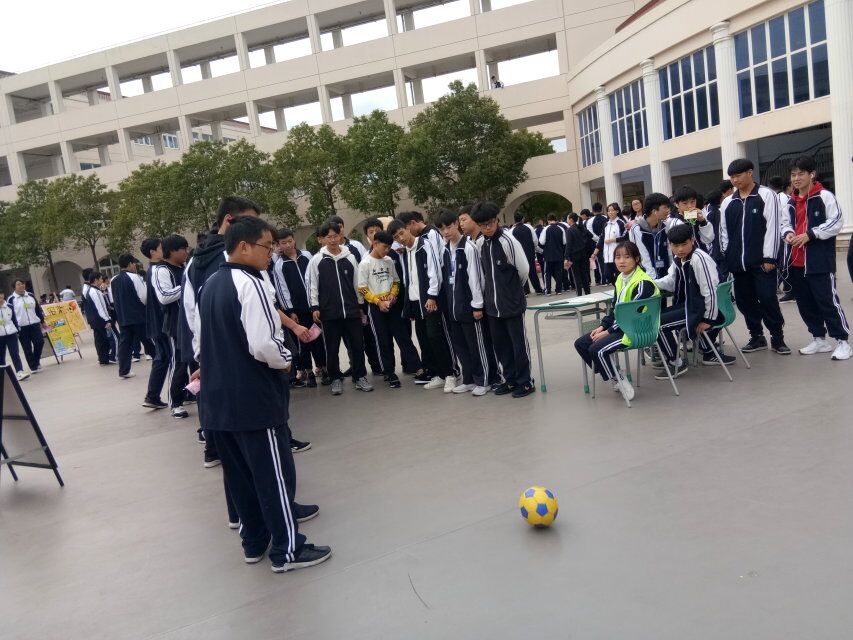 还有足球绕桩,这个这个游戏活动也有一定难度,因为它要由一名学生带球顺利绕过五个桩,并且在这期间足球不能碰到桩,才算成功。这考验一个人的平衡控制能力,以及一个人的耐心。