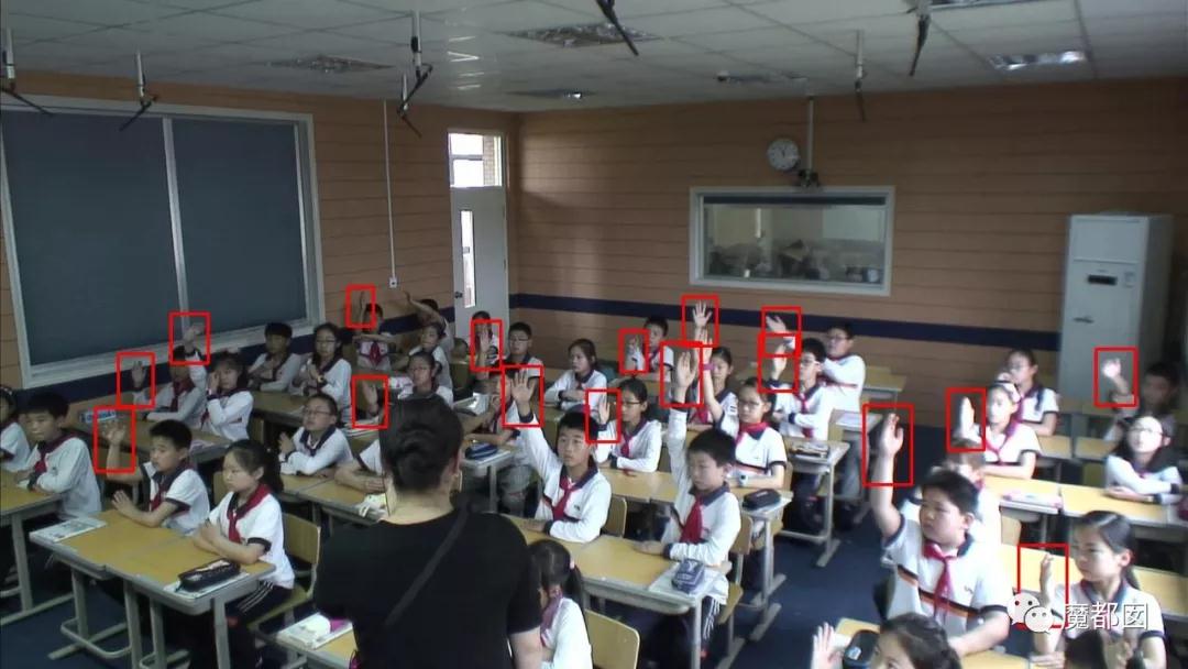 同时,孩子们的每一个表情都逃不过系统的实时分析,你上课为何不举手?或者举手次数过少?AI会报警,老师找你谈话,家长会发怒责问。别怀疑,现在已经做到了。举手的都会标注红框,并纳入数据库,那些没举手的也会纳入数据库。