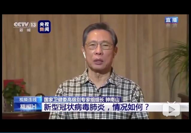 5. 央视新闻《【新闻1+1】钟南山肯定新型冠状病毒肺炎人传人》