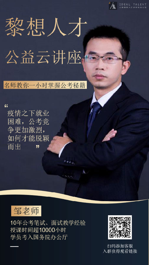 为了帮助同学们进一步了解公考情况,提前备考,我们将在线上举行公益云讲座,邀请公考名师,为大家答疑解惑,分享公考知识,讲授备考方法。