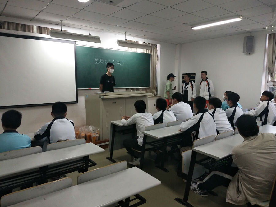 20201012日下午445分监察部于教学楼211教室召开了监察部第一次会议,本次会议由监察部部长谭逸天、副部长寇羽、副部长季俊毅主持,由监察部全体部员出席。宣传部部长吉祥运、副部长吴传真及宣传部部员旁听。