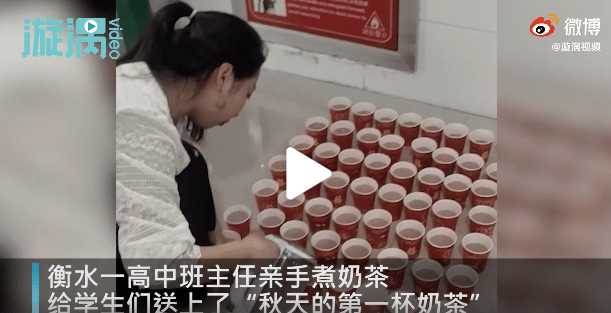 买来原料亲手煮奶茶给学生送上了