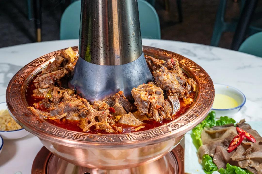 多数北方火锅,要用到一口厚底座、圆肚子的铜质锅子,炭火旺盛,周边一圈汤水鼎沸,最配冬雪。这一容器衍生出北方各地的“土火锅”,食材蘸料,也因地制宜。