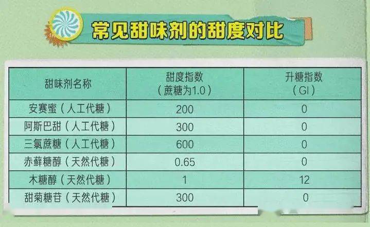 之前只知道是代糖,但是不知道这些代糖的甜度比蔗糖高了这么多倍!
