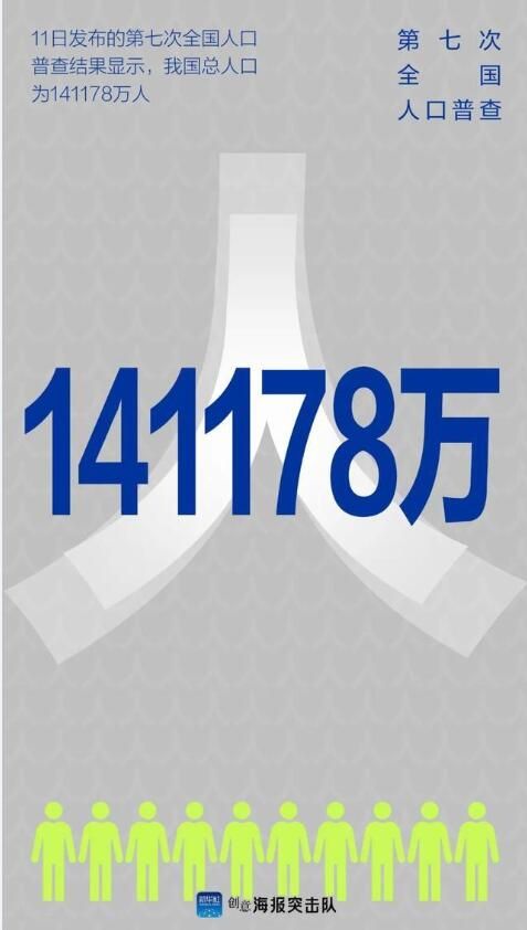 第七次全国人口普查结果显示,我国总人口为141178万人,与2010年(第六次全国人口普查数据)的133972万人相比,增加7206万人,增长5.38%,年平均增长率为0.53%(全国人口是指我国大陆31个省、自治区、直辖市和现役军人的人口,不包括居住在31个省、自治区、直辖市的港澳台居民和外籍人员),比2000年到2010年的年平均增长率0.57%下降0.04个百分点。数据表明,我国人口10年来继续保持低速增长态势。