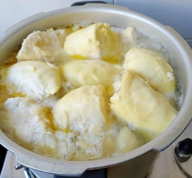 另外值得一提的是,因为榴莲富含维生素和能量,民间还有“榴莲赛母鸡”的说法。粤菜里,就有一道“榴莲炖母鸡”的菜式。说是菜,其实更像是甜品。