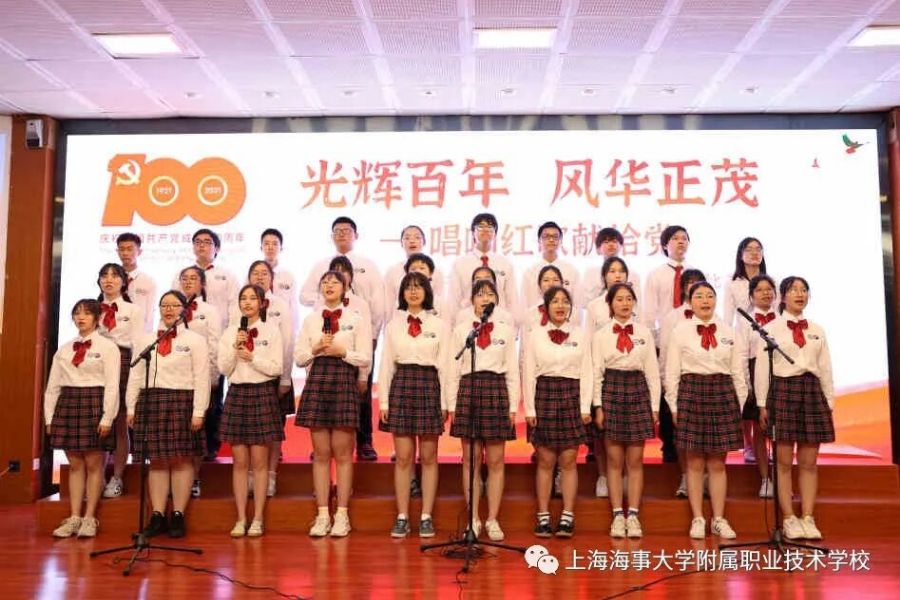 2021年,是中国共产党建党一百周年。为了庆贺中国共产党建党100周年,上海海事大学附属职业技术学校在4月举行了“光辉百年,风华正茂——唱响红歌献给党”为主题的班级合唱比赛。我们班级也报名参加了本次的合唱比赛。