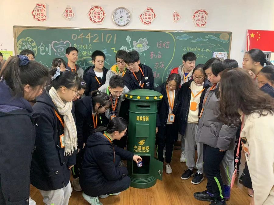 满怀期待下,我们班一同观看许愿瓶放进邮筒的一瞬间,一起对之前后悔的事情说再见,写下自己的心愿,将会在2024年毕业之时,打开瓶子,找寻三年前自己写下的心愿。