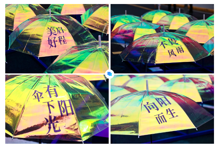 以亚克力镭射材质的雨伞为主角,经过精心设计,连成了"彩虹"长廊,组成了心形浪漫的"伞圃",还凝聚成了一个巨大的"伞球"。这些前卫潮流的伞面在石库门建筑间闪耀,仿佛一道道彩虹,为游园的市民和游客带来了浪漫与惊喜。个性的创意艺术装置与市民和游客们手中的伞共同描绘出一幅流动的七彩画卷,成为城市一道独特的风景。
