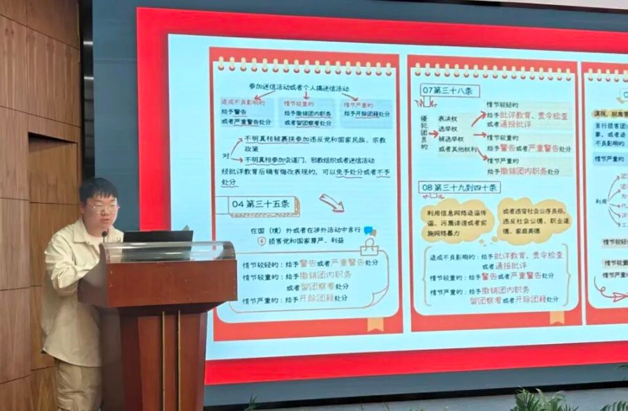 他结合团的历史经验和现实案例,深入浅出地阐释了《条例》所体现的严明纪律、自我革命的共青团传统,并通过对典型违纪行为的剖析,引导大家深刻领会了严守纪律对于团员个人成长和团组织发展的重要性。他特别强调,纪律既是约束,也是保障,是共青团保持先进性、纯洁性的生命线。现场学员认真聆听、积极互动,不时记录要点,交流体会,展现出浓厚的学习热情和严肃的组织观念。整场授课既有理论高度,又贴近实际,进一步增强了在场积极分子向团组织靠拢的决心和遵守纪律的自觉性。
