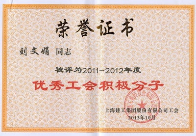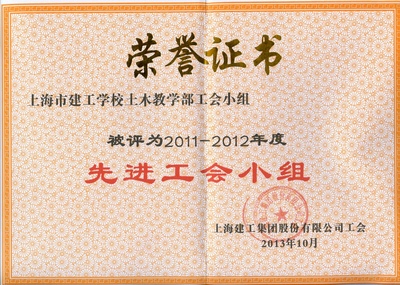 土木教学部工会小组被评为上海建工集团股份有限公司先进工会小组、张梅萍被评为上海建工集团股份有限公司优秀工会工作者、刘文娟被评为上海建工集团股份有限公司优秀工会积极分子。