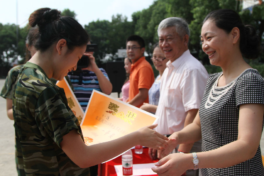 最后,高国兴校长向在本次军训中表现优异的班集体颁发奖状,并对我校14级新生寄予希望,希望他们能把军训中形成的好思想、好作风、好风貌,带到今后的学习、工作和生活中去,以实际行动为学校建设发展做出应有的贡献。