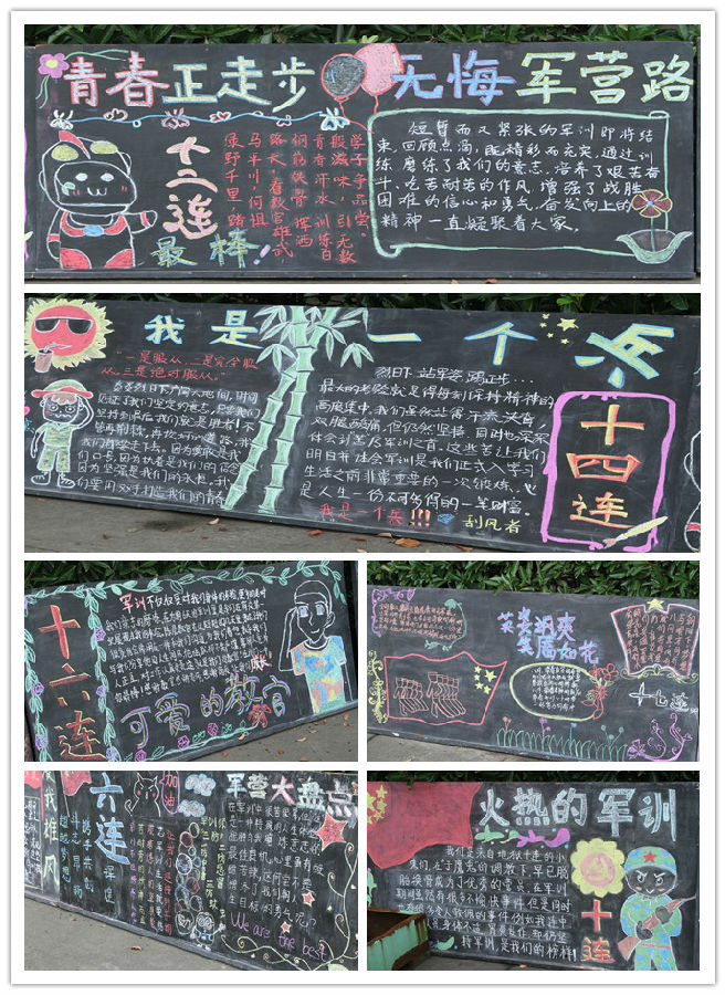 在开展的板报设计活动中,我校14级新生充分展现了他们的聪明才智,板报内容丰富、图文并茂、生动逼真。通过这次设计活动,同学们用他们的热情和个性,抒发了自己对军训生活的看法,对新校园生活的向往。