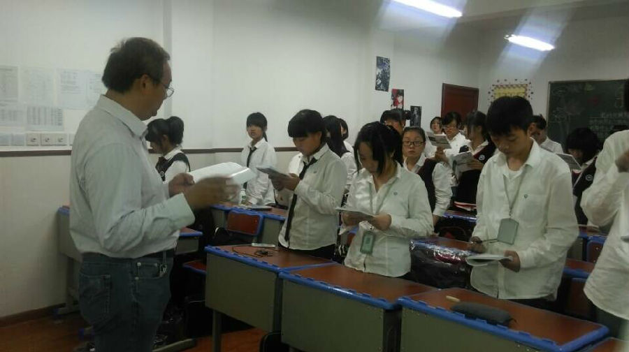 自从在音乐课上学了中职生之歌——璀璨星光后,就能听到一下课广播中就放这那高昂的女声伴随到我们上课,脑海中随时浮出洋溢着青春的歌词。音乐课上,我们大声的唱到,整个大厅充满响亮的歌声仿佛是要让大家都听到这美妙的歌曲。听,女孩们活泼轻快的曲调使人身心舒服,男孩们激情热闹的声音令人也想哼上几句。一次中午,合唱团的学长到班中选取人选,虽然当时没有人自告奋勇的去报名 ,可当学长一走,有人便拿出书与好友一起唱上几句。左边不时的传来那以烂于心的歌词,右边也不甘示弱的唱出欢乐的歌曲,整个中午班中被璀璨星光环绕。我相信不久之后我们全班能够如广播中那悦耳的声音一般,整齐统一,充满感情的唱出......