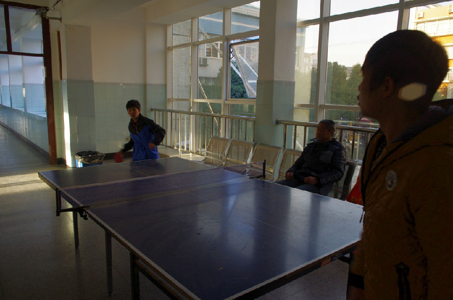 乒乓社团的同学拿着球拍轮番在乒乓桌上博弈,打得不亦乐乎,指导老师在一旁不时地指导一下他们,认真的传授经验,解惑。我相信我校的乒乓活动会越办越好!