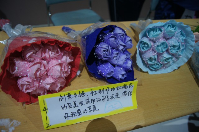 各位同学,大家好。5月4日、5月5日,我校团委分别在操场、光华楼大厅举行了两场以“文化传承,科技创新。”为主题的“I-Mart 创意集市”。很多班级的同学都非常积极踊跃地参与到了其中,并且大胆地发挥了自己的想象。现在让我们来一次“博览会”,评评最受欢迎的创意作品吧!    (下面都会有照片以及介绍,请大家仔细评审~部分班级的照片将会陆续补上哦)