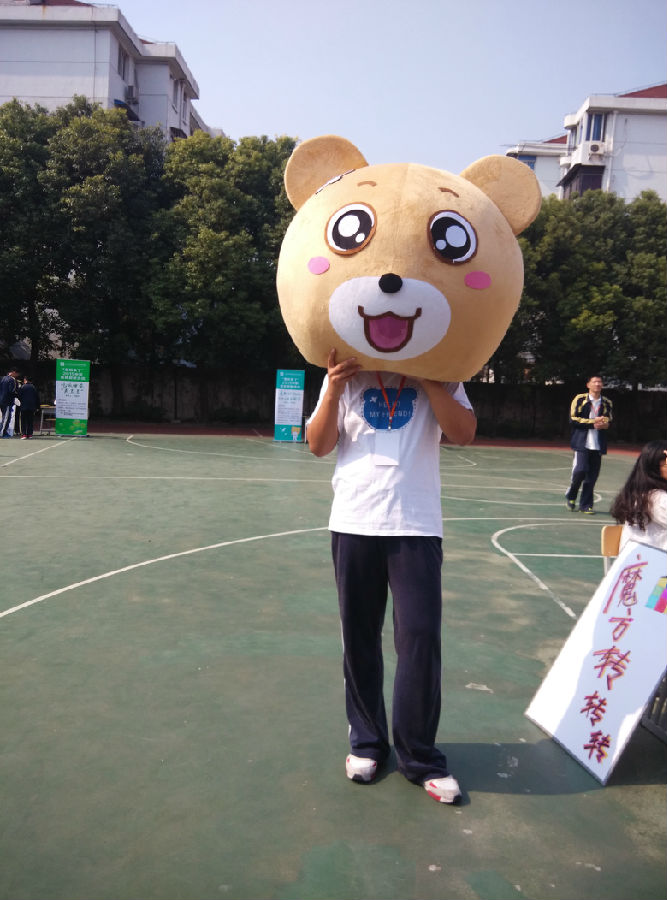 游戏火热进行中,不少新同学在参与的同时,也喜欢上了我们呆萌可爱的易班熊,与它合影留念。