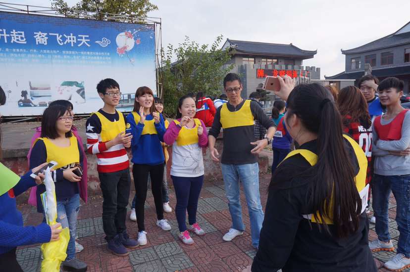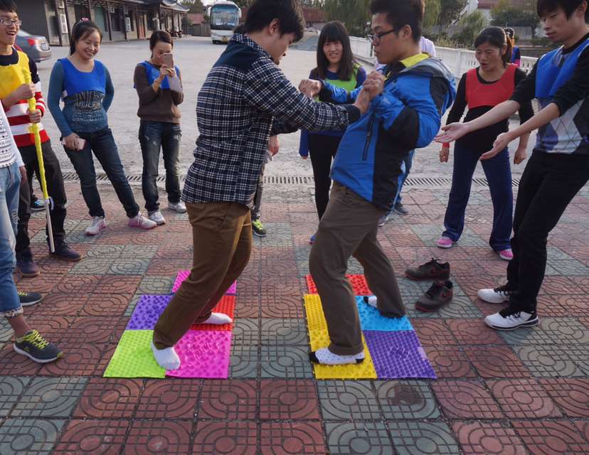 在到达了目的地以后,每个小组进行了一次热身比赛,有吹气球,可乐罐45°倾斜,跳长绳等一系列小游戏,耗时最短的小队胜利,优胜的队伍可以获得下午比赛时的重要的道具卡,比赛完毕以后,大家一起去了当地的农家乐吃午饭补充能量,好应对下午的大战。