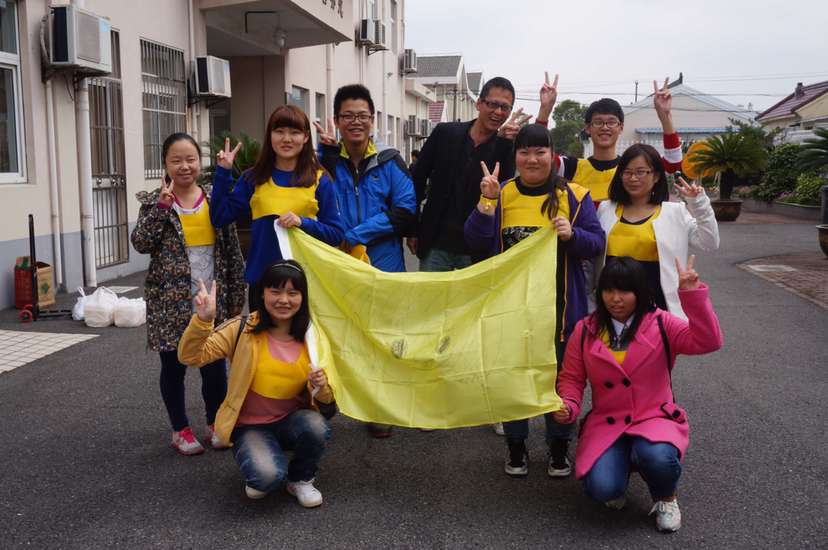 目的地是崇明的前卫村,早上8.30坐上大巴车从巨峰路出发,在路途中,领导组织我们以拍卖的形式来组队,分为红蓝黄三队